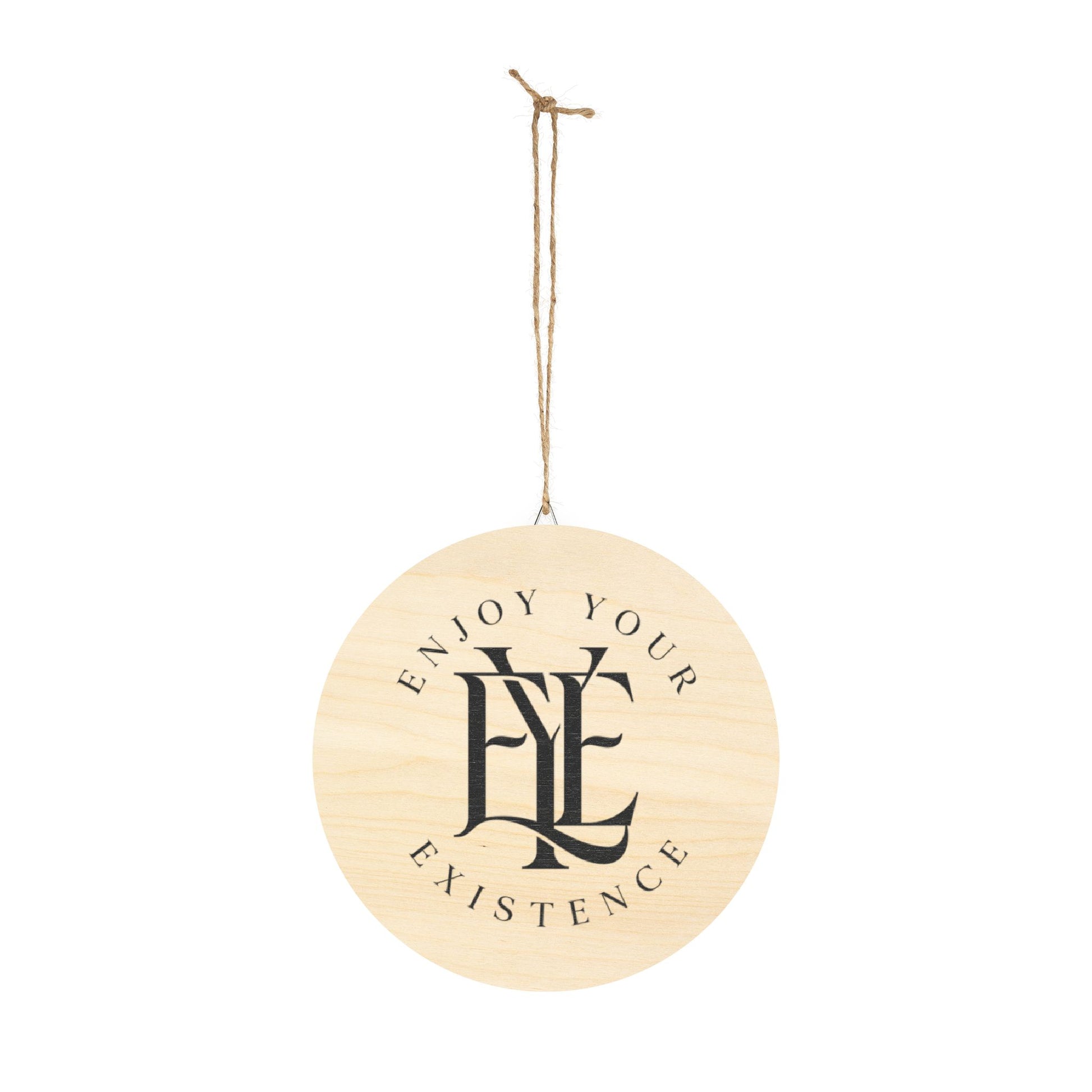 A round Baltic birch wood sign with understated edge marks and a bold black monogram-style design that reads “Enjoy Your Existence.” Its warm, pale wood grain and crisp UV-printed artwork create a calm, slightly wry statement piece that settles into a cozy corner, entryway, or home office. Lightweight and ready to hang with the included metal hook and jute twine, this sign blends natural texture with clean typography to add personality without shouting. It feels like a quiet reminder — a small, everyday pause that fits into mindful routines and offbeat, artsy decor schemes.